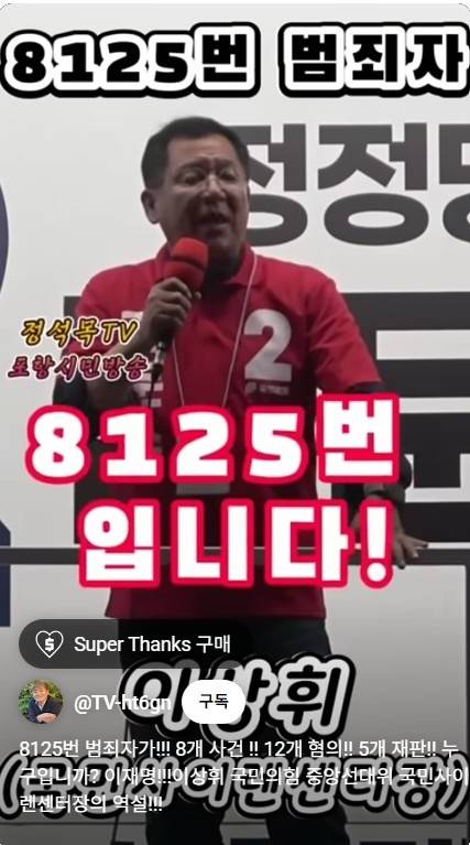 2024년 총선에서 경북 포항시 남구·울릉군 지역구에 출마했고 당선됐다. 당선 직후부터 국민의힘 미디어특별위원회 위원장을 맡고 있는 그는 지난 대선 국면에서 이재명 당시 후보를 "8125번"이라 칭하기도 했다. 그는 지난 5월 19일 페이스북에 자신의 유세 장면을 공유했는데, 발언 내용은 다음과 같다.
