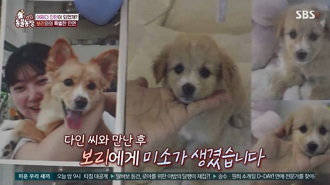 다인 씨는 "예전에 13년 동안 키웠던 가족 강아지가 있다"며 "걔가 무지개 다리를 건너고 몇 년간 강아지 생각을 안 하다 시내 길가에 오빠랑 버려져 유기견보호센터에서 보호 중인 보리를 봤다. 보는 순간 '데려와야겠다'는 생각이 들어 그냥 (입양을) 신청했다"고 말했다.