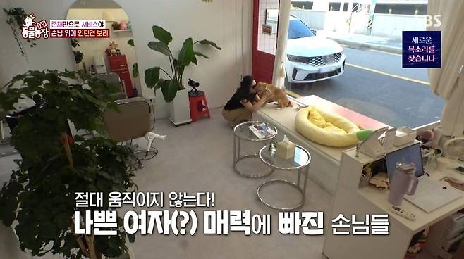 미용은 다인 씨, 영업은 보리가 담당하며 '환상의 호흡'을 자랑하는 이들 덕분에 미용실은 연일 북적였다. 특히 단골들에게는 보리가 직접 나서서 특별 서비스까지 제공했다. 바로 미용 의자에서 자신을 안고 쓰다듬을 수 있게 해주는 '출장 애니멀 테라피' 서비스. 손님은 "올 때마다 이런다. 만져줘야 좀 덜 짖는다"며 능숙하게 보리를 쓰다듬어줬다.