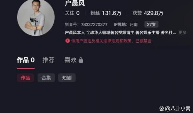 21일 중국 중화망 등 현지 매체에 따르면, 후천펑의 더우인, 웨이보, 틱톡 등 계정이 일제히 이용 중지됐다. 구독자가 90만 명에 달하는 그의 웨이보 페이지에는 '관련 법률 및 규정 위반으로 계정이 현재 정지된 상태'라는 메시지가 표시됐고, 구독자 130만 명이 넘는 더우인 계정에도 모든 게시물이 사라졌다. 틱톡 계정 역시 마찬가지다.