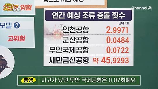 게다가 치명적인 기체 손실 사고, 그러니까 진짜 대형 사고가 날 주기까지 계산해 보니까요. 인천공항은 295년마다 한 번, 원주공항은 약 13만 년에 한 번 사고가 날 수 있다는 거예요. 그런데 새만금은 빠르면 19년 만에 치명적인 기체 손실 사고 날 수 있다는 예상이 나온 겁니다. 아무리 길어야 84년, 짧으면 19년. 이거 심각하죠.