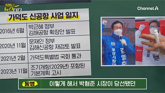 이제 관심은 어디로 쏠릴까요. “그럼 다른 공항들은 괜찮은 거냐?” 이거예요. 제일 대표적인 게 가덕도 신공항입니다. 부산 가덕도 신공항도 지금 한창 추진 중이거든요. 원래는 박근혜 정부 때 김해공항 확장으로 가려고 했는데, 문재인 정부 들어와서 뒤집고 가덕도로 방향을 틀었죠. 그리고 2021년 2월, 국회에서 가덕도 특별법을 통과시킵니다. 이게 언제냐면 2021년 2월인데 국회 통과하고 2개월 만에 부산시장 보궐 선거가 있었어요. 그러니까 여야가 다 합심해서 부산 표심을 잡으려고 이걸 밀어붙였다는 얘기가 많았죠. 그 결과 박형준 시장이 당선되기도 했고요.