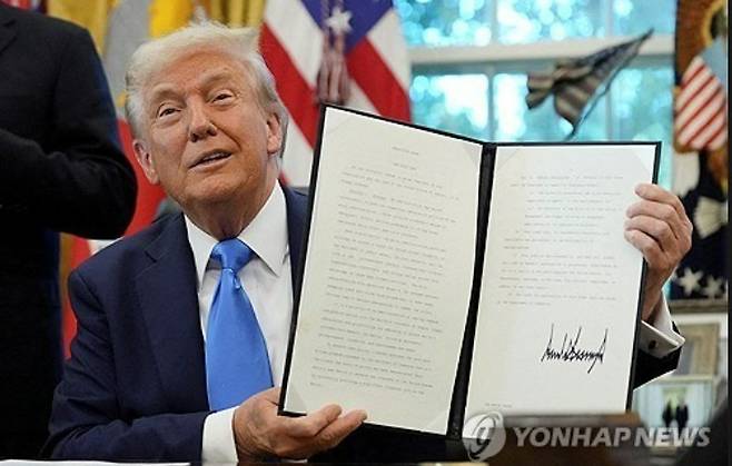 [전문직 비자 수수료 인상 포고문에 서명한 트럼프 (로이터=연합뉴스)]