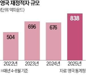21일 영국 통계청(ONS)에 따르면 2025~2026회계연도 첫 달인 올해 4월부터 8월까지 영국 재정적자는 누적 838억파운드(약 158조원)로 집계됐다. 코로나19가 한창이던 2020년 이후 최대 규모다. 정부 전망치(724억파운드) 대비 15.7% 많고 지난해 같은 기간(676억파운드)보다 24% 늘어났다.