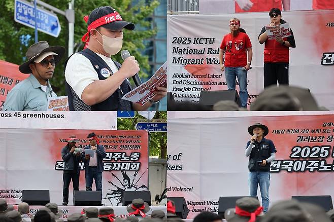 | ▲ 민주노총과 이주노조는 21일 오후 2시 서울지방고용노동청 앞에서 '권리보장 정책으로 전면 전환! 강제노동 철폐! 사업장 변경의 자유 보장! 모든 이주노동자의 노동권 보장! 2025 민주노총 전국이주노동자대회'를 열었다. |