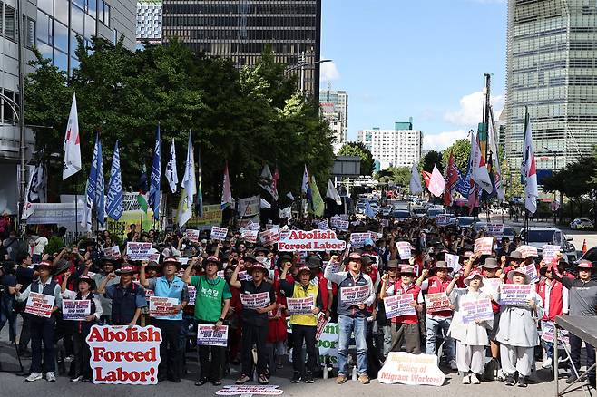 지난 2004년 8월 17일부터 시행된 고용허가제 시행 21년을 맞아 전국 이주노동자들이 모여서 강제노동 철폐와 사업장 변경의 자유 보장을 강력히 요구했다.