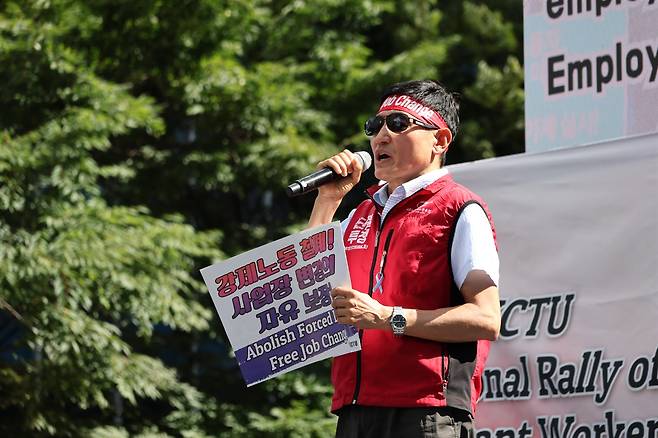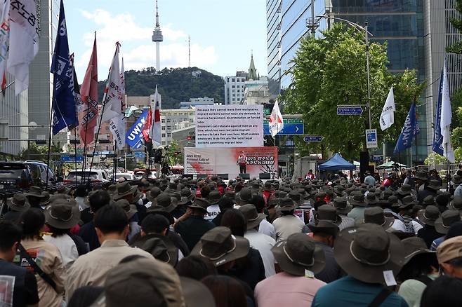 이어 "이재명 정부는 현행 고용허가제와 이주노동 제도를 폐지하고, 노동부의 책임 아래 사업장 변경의 자유와 모든 권리가 보장되는 노동허가제를 쟁취하기 위해 이주노조 조합원들은 민주노총 ·시민사회단체들과 함께 투쟁에 나서겠다"고 했다.