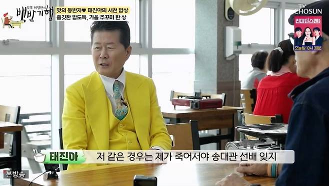 태진아는 선천적인 가수로 이미자, 나훈아, 조용필 등을 꼽으며 "후천적인 가수가 있다. 제가 그렇다"라고 밝혔다. 허영만이 "故 송대관 선생도 후천적이냐"라고 묻자 태진아는 "송대관 선배는 선천도, 후천도 아니고 중간이다"라고 농담했다. 단짝 송대관 얘기가 나오자 태진아는 "송대관 선배 얘기만 나오면 보고 싶다"라며 그리운 마음을 전했다.
