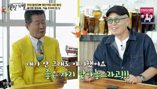 21일 방송된 TV조선 '식객 허영만의 백반기행'(이하 '백반기행') 태진아의 서천 밥상 편이 공개됐다.