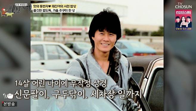 이날 태진아는 가수가 된 계기에 관해 "노래는 못 했었는데, 노래 부르는 걸 좋아했다"라고 말문을 열었다. 태진아는 "(14살에 상경해서) 중국집 배달부터 시작해서 신문팔이, 구두닦이, 세차장 일까지 한 37가지 일을 했다"라며 "일식집에서 일할 때가 7~8번째 직업이었다. 그때 서빙하면서 노래를 흥얼거렸더니, 한 손님이 명함을 줬다. 서승일 작곡가였다"라며 역사적인 첫 만남을 떠올렸다.