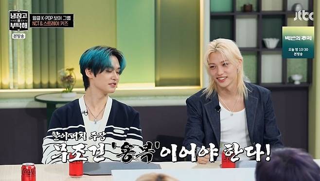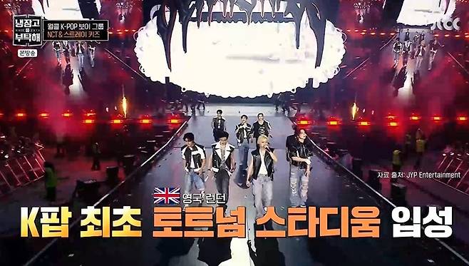 이날 NCT 마크와 천러, 스트레이 키즈 필릭스와 리노가 등장했다. K팝 아티스트 최초로 영국 런던 토트넘 스타디움에 입성한 스트레이 키즈. 안정환은 "손흥민 선수가 뛰던 곳에서 공연했다는 거 아니냐. 축구 종주국에선 웬만하면 자기 운동장을 빌려주진 않는다"라며 대단하다고 감탄했다. 필릭스는 "영광스러운 자리였고, 손흥민 선수가 썼던 라커룸, 샤워실도 구경했다"라고 전했다.