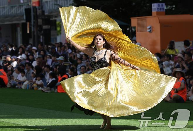 (서울=뉴스1) 권현진 기자 = 21일 서울 노원구 일대에서 열린 2025 노원거리페스티벌 '댄싱노원' 한 참가자가 화려한 춤선을 선보이고 있다. (노원구 제공. 재판매 및 DB 금지) 2025.9.21/뉴스1