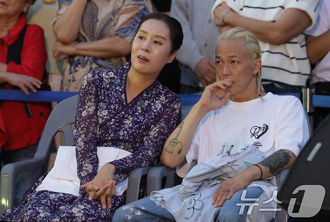 (서울=뉴스1) 권현진 기자 = 안무가 팝핀현준과 국악인 박애리 부부가 21일 서울 노원구 일대에서 열린 2025 노원거리페스티벌 '댄싱노원'에 참석해 참가자들을 지켜보고 있다. (노원구 제공. 재판매 및 DB 금지) 2025.9.21/뉴스1