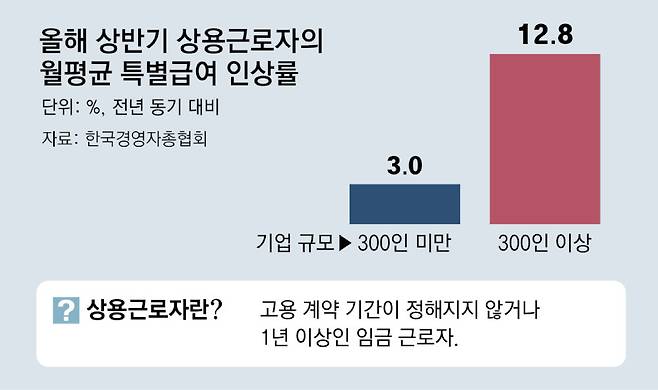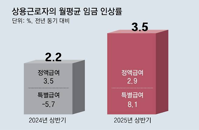 반면 특별급여 인상률이 8.1%에 달해 지난해 상반기 전년 대비 5.7% 하락했던 것과 비교하면 13.8%포인트 증가했다.