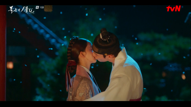 그러면서 그는 “나의 반려가 되면 아침마다 손수 비빈 밥을 만들어 주마”라며 연지영에게 키스했다. 이내 서로의 마음을 확인한 두 사람. 연지영은 ‘그때였다. 내 시대 내 세계로 돌아가지 않아도 어쩌면 괜찮지 않을까. 하는 생각이 든 것이’라고 생각해 눈길을 끌었다.