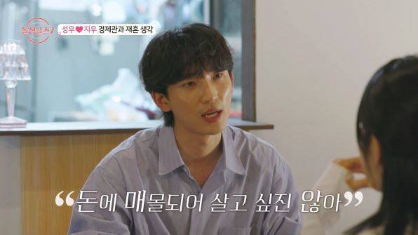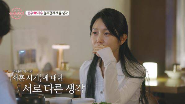 오붓하게 식사를 하던 중, 성우는 결혼에 대한 이야기를 꺼냈다. 성우는 “확신만 있다면 연애 기간은 중요하지 않다”며 빨리 결혼하고 싶다는 뜻을 보였으나, 지우는 그의 경제관에 대해 물어봤다. 이에 성우가 “돈에 매몰되어 살고 싶진 않다”고 하자, 지우는 “원래 2~3년 안에 큰 부를 쌓는 게 목표였다. 그래서 결혼 시기는 그 뒤로 늦추고 싶은 마음”이라고 솔직하게 밝혔다. 재혼 시기와 경제관을 두고 처음으로 이견에 부딪힌 가운데, 성우는 “나 혼자만 급하구나”라며 서운해 했지만 지우는 “두 번의 이혼을 겪었기에 더욱 신중해야 할 필요가 있다”고 조심스런 속내를 드러냈다.