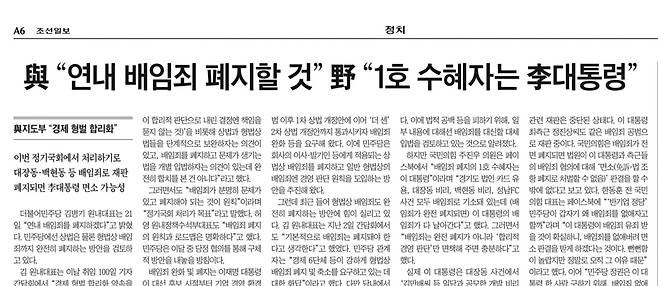 | ▲ 9월 22일 조선일보 6면 기사. |