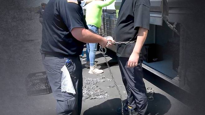 나 같은 경우는 운 좋게 수갑을 차진 않았다. 처음엔 도망가려는 시도를 한 사람들을 묶은 줄 알았다. 시선이 딱 가게 돼 있다. 중범죄자 같이 손이 묶여서 들어오니까. 한 여직원은 내가 범죄자도 아니고 도망칠 것도 아닌데 왜 묶어두느냐고 항의해서 대기하는 동안 풀어주기도 했다. 반면 케이블 타이로 묶여서 공장 밖으로 끌려 나오고, 다시 호송차에 탈 때 수갑을 찬 여성 직원도 있었다. 잘못한 것도 없는데 수치스럽게 느껴졌다고 한다.