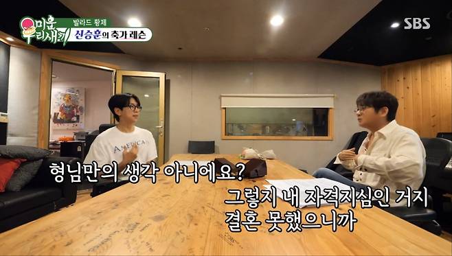 이에 신승훈은 "다 잘 살고 있지"라며 뿌듯해하더니 "나만 이러고 있지"라고 덧붙여 웃음을 자아냈다.