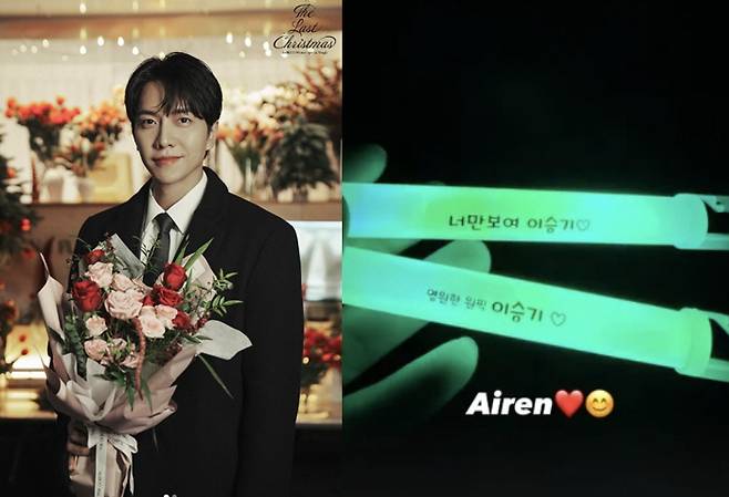 이승기는 20일 자신의 계정에 "아이렌♥"이라며 녹색 응원봉 사진을 게재했다.