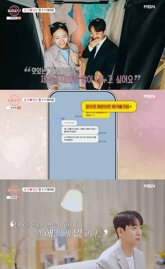 이날 서로를 알아가기에 부족했던 호주의 시간을 뒤로하고 한국으로 돌아온 동건과 명은은 첫 데이트에 나서며 MC들을 기대하게 만들었다.