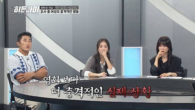 라이브 이슈에서는 토막 살인을 저지른 뒤 경찰 조사 과정에서 기이한 행동을 한 여성 살인범이 등장한다. 즉석 만남 어플에서 만난 50대 남성을 무인 모텔에서 잔혹하게 토막 살해한 여성. 그는 피해 남성의 상반신이 담긴 이민 가방을 차 뒷좌석에 실은 채로 또 다른 조건만남을 했고, 새로 만난 남성을 시신이 있는 차에 태우고 모텔에 가기도 했다. 심지어 경찰 조사 중 증거 사진을 보고 히죽거리거나 경찰의 질문에 손으로 얼굴을 가리며 포복절도하는 뻔뻔한 모습까지 보여 모두를 충격에 빠트린다. 프로파일러 권일용은 "여성은 조사 상황 자체를 즐기고 있다. 자신의 의도대로 경찰이 움직이고 있다고 생각하는 것"이라고 분석했다.