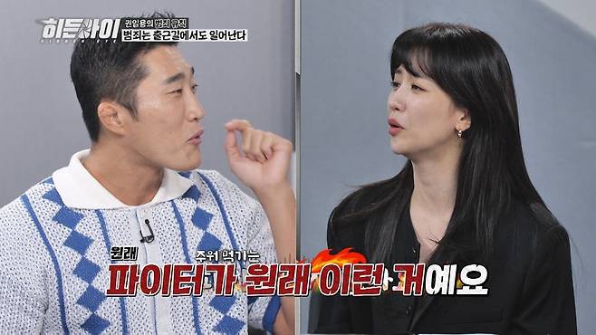 권일용의 범죄 규칙에서는 치열한 범죄 교집합 퀴즈 대결이 진행된다. 김동현이 재빠르게 답을 가로채는 모습에 박하선은 "파이터 맞냐"며 면박을 줘 웃음을 자아낸다. 김동현은 "파이터는 늘 주워 먹고 남을 속이는 직업"이라며 업계 비밀을 폭로해 모두를 폭소케 한다.