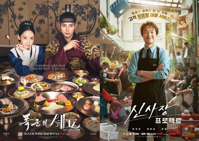 최근 tvN 토일드라마 '폭군의 셰프'가 수도권 가구 순간 최고 18.1%, TV-OTT 드라마 화제성 4주 연속 1위를 기록했고, 넷플릭스 글로벌 TV쇼 비영어 부문 1위를 달성하며 국내외로 뜨거운 열풍을 불러일으키고 있다. 특히 디테일한 연출이 느껴지는 판타지 로맨틱 코미디와 한국 전통 요리 소재와의 독창적 만남에 호평이 이어지고 있다. 월화드라마 '신사장 프로젝트'는 방송 첫 주 만에 수도권 가구 평균 7.8%, 최고 8.9%를 기록하며 올해 방송된 tvN 월화드라마 중 최고 수치를 기록하며 순항을 시작했다. 코믹한 매력까지 더해진 한석규의 또 한 번의 연기변신이 극찬을 받고 있다.