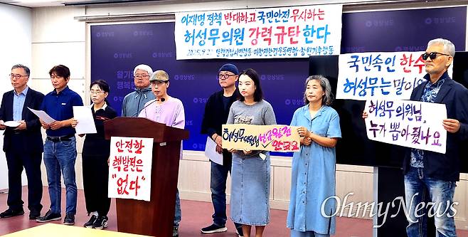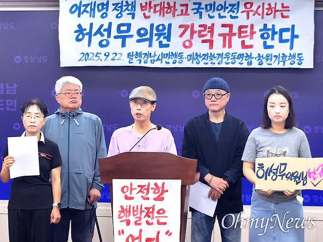 탈핵경남시민행동, 마산창원진해환경운동연합, 창원기후행동이 22일 오전 경남도청 프레스센터에서 기자회견을 열어 더불어민주당 허성무 국회의원(창원성산)에 대해 이같이 밝혔다.