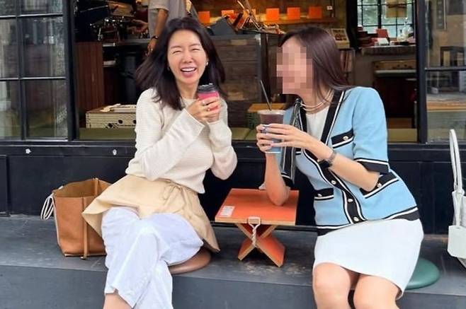 공개된 사진 속 안선영은 성수동의 한 카페테라스에 앉아 커피를 든 채 밝게 웃으며 지인과 함께 즐거운 시간을 보내고 있다.