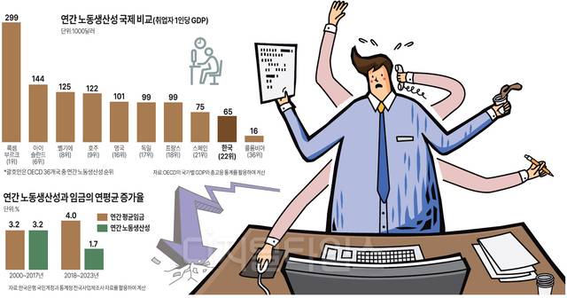 [기획] 주5일 일해도 ‘4일제 국가’의 절반… 韓 노동생산성 민낯