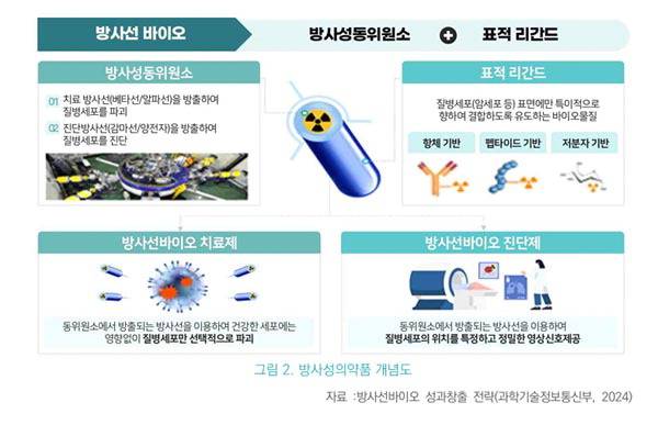 방사성의약품은 방사성동위원소에 화학 물질이나 생물학적 물질을 활용해 질병을 진단하거나 치료하는 데 사용하는 의약품이다. 체내 특정 조직이나 병변에 선택적으로 모여 방사선을 방출하며, 이를 통해 질환의 위치와 특성을 파악하거나 암세포를 직접 파괴하는 등 차세대 정밀의료의 핵심 기술로 주목받고 있다.