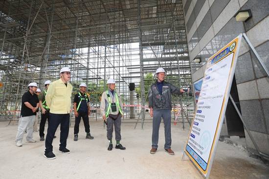 이날 현장에서는 비계 안전성, 안전모·안전고리 등 추락 방지 장비 착용, 낙하물 방지 설비, 작업자 안전교육 이행 등 안전사고 예방을 위한 사항을 꼼꼼히 점검했다.