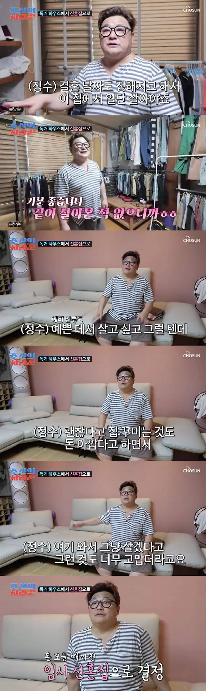 22일 방송된 TV조선 '조선의 사랑꾼'에서는 윤정수가 직접 꾸민 집을 제작진에게 소개하는 모습이 담겼다.