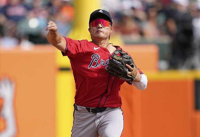 김하성은 22일 디트로이트와의 미국프로야구 메이저리그(MLB) 방문경기에 6번 타자 유격수로 선발 출전해 1-0으로 앞선 4회초 1점 홈런을 날리며 팀의 6-2 승리를 도왔다. 김하성은 애틀랜타 유니폼을 입고 18경기를 치르는 동안 벌써 3개(시즌 홈런 5개·탬파베이 기록 포함)의 아치를 그렸다. 올 시즌 애틀랜타 유격수 포지션에서 홈런을 친 선수는 김하성이 유일하다. 애틀랜타의 중심 타자로 떠오른 김하성은 베이스를 돌 때 양팔을 벌려 파닥이는 ‘날갯짓 세리머니’도 선보였다.