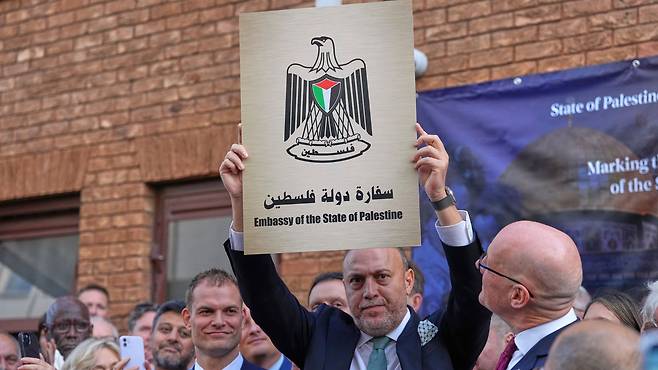 좀로트 대표는 또 '팔레스타인 국가 대사관'이라고 쓰인 명판을 들어 보이면서 "법적, 행정적 업무를 처리 중"이라고 강조했습니다.