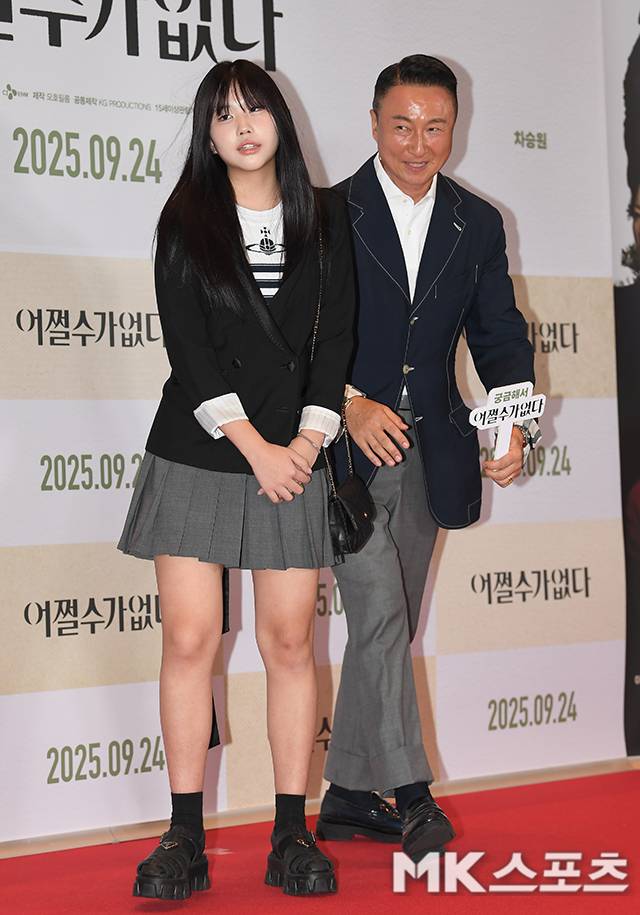 22일 서울 CGV용산아이파크몰에서 열린 영화 ‘어쩔수가없다’ VIP 시사회에 주영훈이 딸과 함께 참석했다. 포토타임에 선 주아라 양은 불과 두 달 전보다 한층 훌쩍 큰 모습으로 시선을 끌었다.