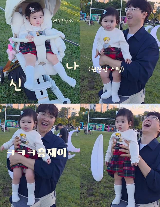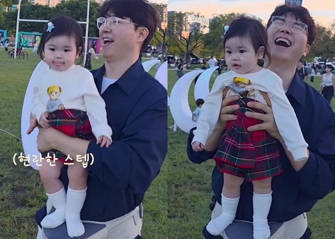 공개된 영상에는 생후 11개월 된 딸 재이가 아빠 박수홍의 품에 안겨 리듬을 타는 모습이 담겼다. 재이는 한강공원에서 열린 어린이 축제에 참여해 신나는 음악에 맞춰 몸을 흔들며 깜찍한 춤사위를 선보였다.
