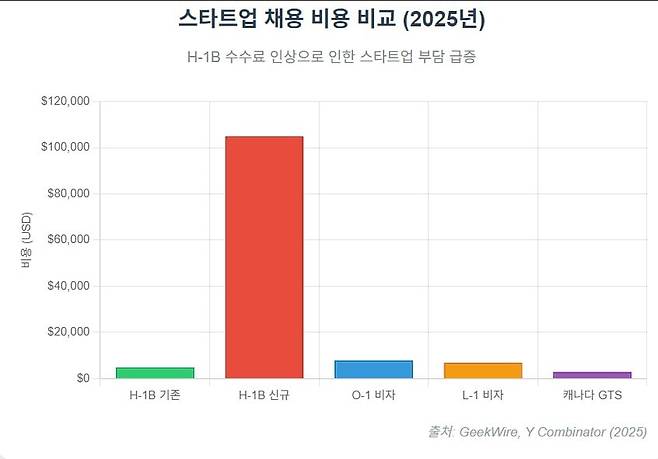 스타트업 생태계 역시 큰 충격에 빠졌다. 자금력이 취약한 스타트업에 10만 달러의 추가 비용은 치명적이다. 시애틀의 스타트업 아웃리치의 공동창업자 매니 메디나는 링크트인에 “이제 H-1B 후원은 엄청나게 비싸졌고, 토론토, 밴쿠버, 런던 같은 도시들이 그 인재들을 데려갈 것”이라고 경고했다. 미국 유명 액셀러레이터인 와이컴비네이터의 최고경영자(CEO) 개리 탄도 “초기 단계의 팀들은 그 세금을 감당할 수 없다”고 우려했다. 이런 고비용 구조가 스타트업의 성장을 막고, 결과적으로 미국 경제의 혁신 동력을 약화할 수 있다는 지적이다.