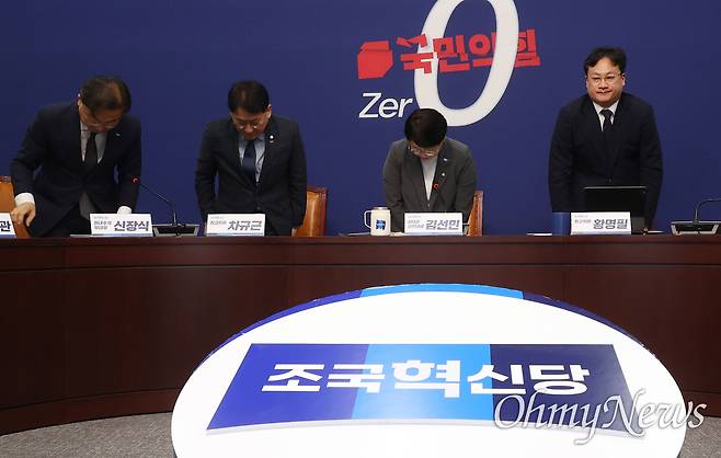 | ▲ 조국혁신당 김선민 대표 직무대행과 최고위원들이 5일 오전 서울 여의도 국회에서 열린 기자간담회에 참석해 당내 성폭력 사건에 대해 “강미정 전 대변인을 포함한 피해자 여러분께 위로의 말씀을 드린다”라며 “이 사건으로 마음을 다치셨을 국민과 당원 여러분께도 깊은 사과의 말씀을 드린다”라고 고개 숙여 사과했다. |