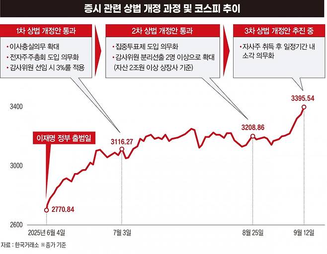 최근 사상 최고치를 기록한 코스피 활약에 펀드매니저 A 씨는 흥분을 감추지 못했다. 그는 9월 정기국회에서 ‘3차 상법 개정안’이 예정대로 통과된다면 ‘코스피 5000으로 가는 길’이 마침내 현실이 될 것이라고 자신했다.