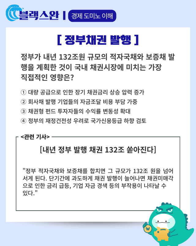 ✓ 정부 채권 발행 영향 추적: 내년 132조 원 채권 공급 증가가 장기금리 상승과 기업 자금조달 비용에 미치는 영향 모니터링 필수
