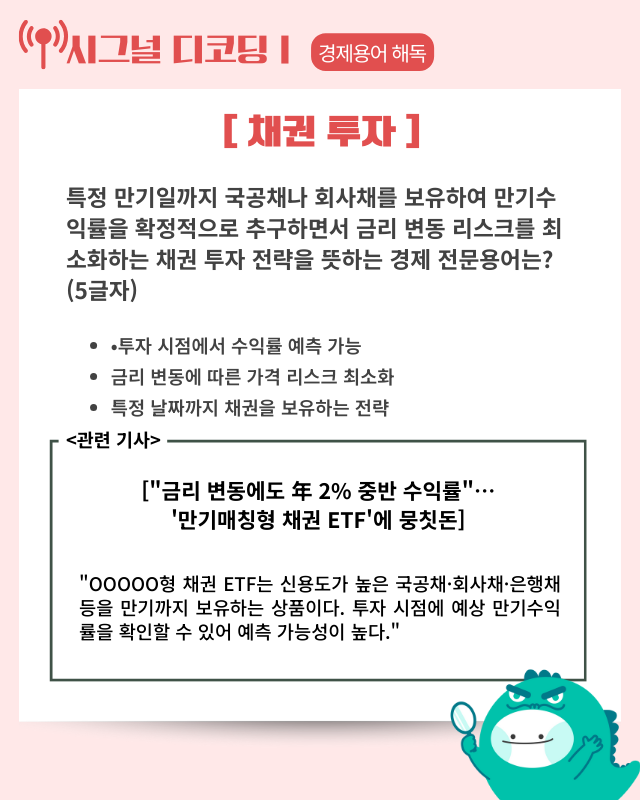 6. “금리 변동에도 年 2% 중반 수익률”···‘만기매칭형 채권 ETF’에 뭉칫돈