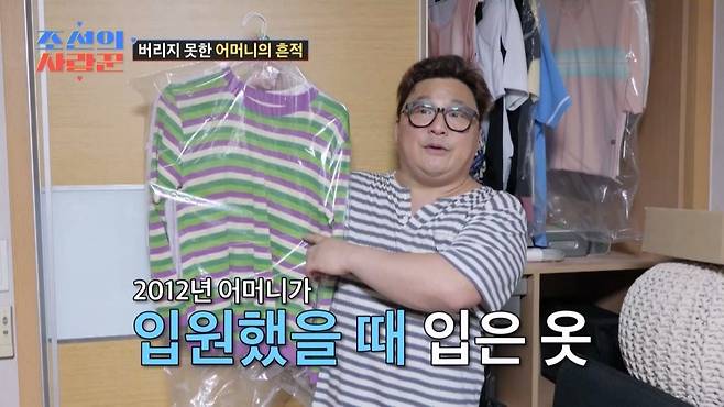 윤정수의 집에는 10년 전 돌아가신 어머니의 유품도 곱게 모셔져 있었다. ”엄마 냄새가 나는 것 같아 태울 수 없었다“는 윤정수의 말에 강수지는 ”나도 엄마가 쓰던 화장품 아직 가지고 있다. 냄새 맡으면 엄마 생각이 난다. 아빠 옷도 가끔 입고 잔다. 못 버리겠더라“며 공감했다.