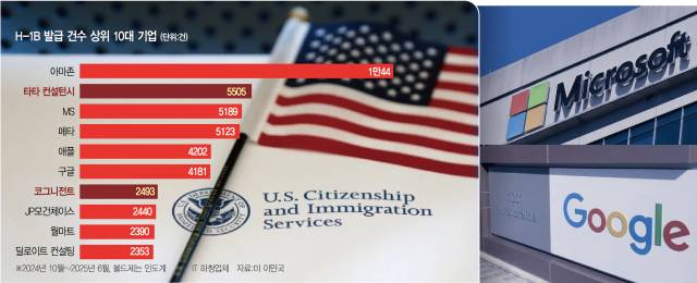 트럼프 행정부가 기습적으로 전문직 비자 수수료를 높이자 빅테크들은 일제히 충격에 빠졌다. 이들은 추가 인재 확보는커녕 당장 자사가 보유한 H-1B 비자 인재를 지키는 데 급급한 모양새를 보였다. 영국 파이낸셜타임스(FT)는 21일 미국 USCIS 통계를 인용해 지난해 미국에서 발급된 신규 H-1B 비자가 모두 14만 1000건에 달한다며 만약 내년에도 H-1B 발급 건수가 지난해 추세로 유지된다면 고용주들은 연간 총 140억 달러(약 19조 6000억 원)를 부담하게 된다고 계산했다.