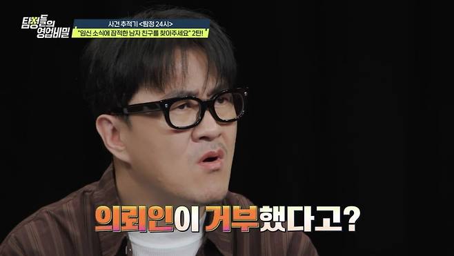 지난 22일 방송된 채널A '탐정들의 영업비밀' 속 '탐정 24시'에서는 "임신 소식에 잠적한 남자친구를 찾아 달라"는 만삭 임신부의 사연이 씁쓸한 결말을 맞았다. 지난주 등장한 의뢰인은 "온라인 게임을 통해 만난 남자친구와 2년 반 동안 교제하며 결혼까지 약속했지만, 임신 사실을 알리자 연락이 끊어졌다"고 호소했다.