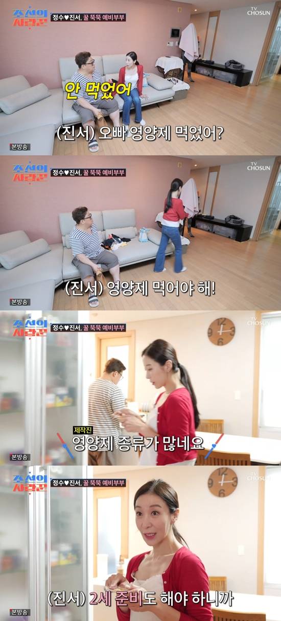 윤정수가 "아침부터 손님들이 잔뜩 와서 정신없어서 못 먹었다"라고 밝히자, 원자현은 "영양제 먹어야 한다. 아침마다 먹으랬잖아. 지금 먹어라"라며 일어섰다.