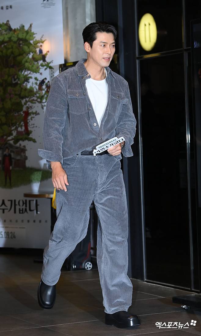 현빈은 코듀로이 셋업을 착용, 차분하면서도 트렌디한 스타일링으로 이목을 집중시켰다. 무채색톤 의상이 현빈의 시크한 분위기를 더 돋보이게 만들었다. 샤프한 턱선과 화려한 이목구비도 인상적이다.