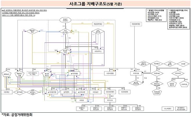 이와 함께 지배구조 말단에 위치한 사조원, 사조동아원, 사조농산 등 8개 계열사가 다시 사조시스템즈, 사조산업, 사조대림 등 주요 계열사 지분을 취득하면서 다수의 순환출자 고리가 형성됐다.