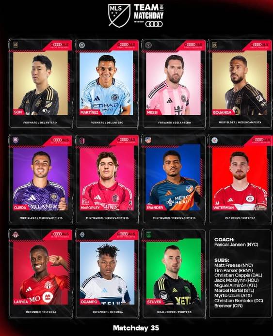 MLS 사무국은 23일(이하 한국시간) 공식 홈페이지를 통해 2025 MLS 매치데이 35 '팀 오브 더 매치데이'를 공개했다. MLS는 경기별로 뛰어난 활약을 펼친 11명을 추려 베스트11을 선정하고 있다.